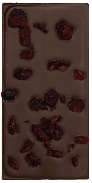 Ingredients: Milk chocolate (sugar, cocoa butter, whole milk powder, cocoa mass, emulsifier: soya lecithin, natural vanilla), cranberries, orange oil, spices.
